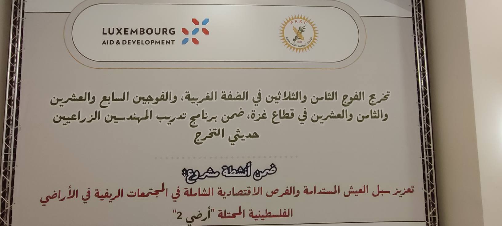 افتتح نقيب المهندسين الزراعيين المهندس سامر فرح ومعالي وزير الزراعة البروفسور رزق سليمية ومعالي وزيرة العمل الدكتورة إيناس العطاري ورئيس مجلس إدارة الاغاثة المهندس سلام الزاغة ومدير الإغاثة منجد ابو جيش حفل تخريج دورة تدريب المهندسين الزراعيين الفوج الثامن والثلاثون. وقد حضر من النقابة نائب النقيب المهندس مقبل ابو جيش والعلاقات العامة المهندس يونس يامين ومدير النقابة المهندس حسام الحج محمد وفي كلمته شكر النقيب الاغاثة الزراعية على هذا التدريب أشاد ببرنامج التدريب المتميز والذي خرج قادة العمل التنموي في فلسطين، وأستعرض نشاطات النقابة في مجالات التدريب حيث تم تدريب 1400 زميلة وزميل خلال الاربع سنوات الماضيه وتطرق الى العمل المشترك بين النقابة والاغاثة الزراعية على مر السنين لرفع مهنة الهندسة الزراعية وزيادة وتنويع التخصصات المستهدفة وعدد البرامج التدريبية على مستوى الوطن وقد تم النقاش حول اليات عمل النقابة وطرق استفادة الزميلات والزملاء من برامج التدريب والانتساب للنقابة والخدمات المقدمه من طرف النقابة والاستفادة من المشاريع التنموية بالمستقبل المنظور، وفي نهاية كلمتة بارك للزميلات والزملاء تخرجهم وشكر الزملاء القائمين على البرنامج وتمنى ان يرى المشاريع الخاصة بالمهندسين الزراعيين، ومن جهته رحب منجد ابو جيش بالنقابة والوزارة وتطرق الى الخطوات المستقبلية في تطوير البرنامج، كما بين معالي وزير الزراعة سليمية الى أن عمق الشراكة بين الوزارة والاغاثة والنقابة وثمن دور البرنامج المميز، واستعرضت معالي وزيرة العمل العطاري فرص العمل بالضفة الغربية والخطوات المتخذه من قبل مجلس الوزراء وتحدث المهندس سلام الزاغة عن أهمية تأسيس المشاريع الخاصة للمهندسين في ظل شح الموارد والتوظيف، وتحدث المهندس عكرمة عدس عن مراحل تطور البرنامج والتدريبات التي يقدمها للمهندسين المشاركين، وبنهاية الحفل تم توزيع الشهادات على الزميلات والزملاء الخريجيين والذين بلغ عددهم 35 مهندسة ومهندس.